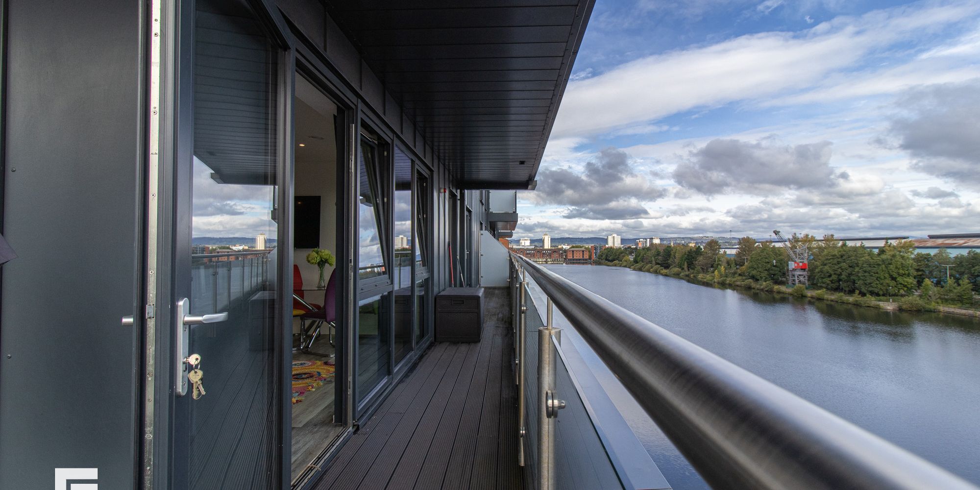 **WRAP-AROUND BALCONY** MGY present to let this this tastefully furnished fifth floor, two double bedroom apartment that boasts a large wrap-around...**WRAP-AROUND BALCONY** MGY present to let this this tastefully furnished fifth floor, two double bedroom apartment that boasts a large wrap-around balcony offering both water and city views in Schooner Wharf, Cardiff Bay. The high specification apartment not only benefits from the balcony and water views but also having an allocated car parking space whilst being a short walk to Cardiff Bay and Cardiff City Centre. The apartment briefly comprises of entrance hallway with storage cupboards, open plan living/kitchen area leading to the balcony, master bedroom with en suite, second double bedroom and main bathroom. 12 month contract. Council tax band E. Electric heating. Deposit £1,575. EPC B. *A holding deposit the equivalent of one weeks rent totalling £330 will be payable to secure the property subject to references and subject to contract*